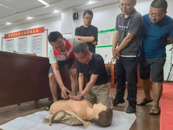 瑞金市分公司开展了应急自救培训演练活动,聘请红十字会专家前来授课。培训内容包括现场应急救护、徒手心肺复苏、除颤仪(AED)使用等。全体员工分三批次参加了培训、实操演练。