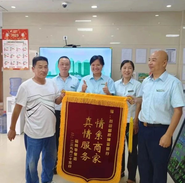 原来自江西邮政“邮享早餐节”活动开展以来,烈桥所在帮巫老板家做好参加“早餐节”活动的前期工作后,每日还安排员工在早餐店协助客户进行支付宝绑卡扫码,给客户送上实实在在的优惠。在全所人员的不懈努力下,每天来巫老板家吃早餐的客户络绎不绝,营业额比以前翻了几番。感恩于邮政良好的服务,巫老板特意送上“情系商家 真情服务”的锦旗。