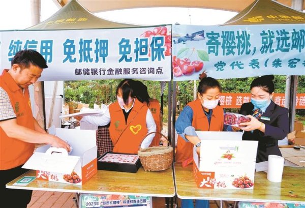 陕西邮政为当地樱桃种植户提供“金融+寄递”一站式服务。