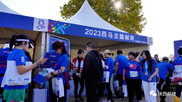 10月29日7时30分,2023西安(星河湾)马拉松赛在永宁门鸣枪起跑,35000名跑者汇聚西安,用奔跑感受千年古都的独特魅力和内陆改革开放高地的日新月异。西安市邮政分公司在活动现场开设主题邮局,为广大参赛选手和市民提供邮品展销、加盖纪念戳等邮政服务。