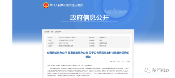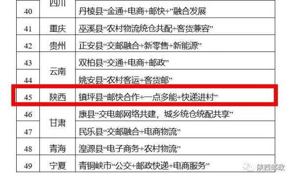近日,交通运输部办公厅、国家邮政局办公室印发《关于公布第四批农村物流服务品牌的通知》,公示确定50个项目为全国第四批农村物流服务品牌。其中,镇坪县“邮快合作+一点多能+快递进村”服务品牌成功入选,为此次全省唯一上榜品牌。