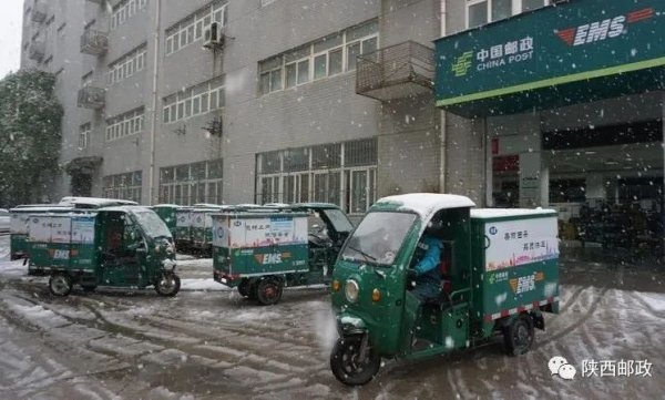 此外,为了应对降温降雪天气可能出现的突发情况,西安邮政在人员、场地、车辆、设备等方面第一时间启动了应急预案,做好人力物力储备与各项安全隐患工作排查,对快递员进行安全培训并适度延长工作时间,坚持以最快的速度将每一件快递安全、高效送达。