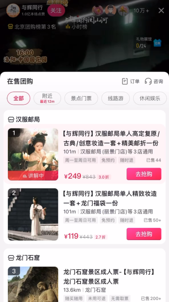 4月25日,董宇辉来到洛阳,开启了“与辉同行”看河南第一站。在“与辉同行”直播间内,多位主播身穿汉服,带领网友跟随镜头参观了洛阳龙门石窟、应天门等名胜古迹,引发了又一轮洛阳文旅热潮。