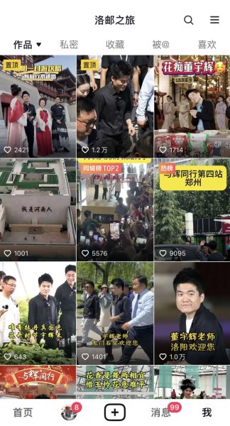 为了配合地方接住这泼天的富贵,洛阳邮政直播团队积极融入洛阳文旅“宠粉”模式,主动和“与辉同行”团队进行了沟通对接,围绕“与辉同行”团队的行程路线、直播内容,以“洛邮之旅”抖音号为主阵地,拍摄制作短视频并进行直播。3天时间里,该团队共发布原创视频13条,累计播放量126.6万,点赞量3.8万,其中5条视频登上了同城热榜,个别视频还登上了抖音热榜。