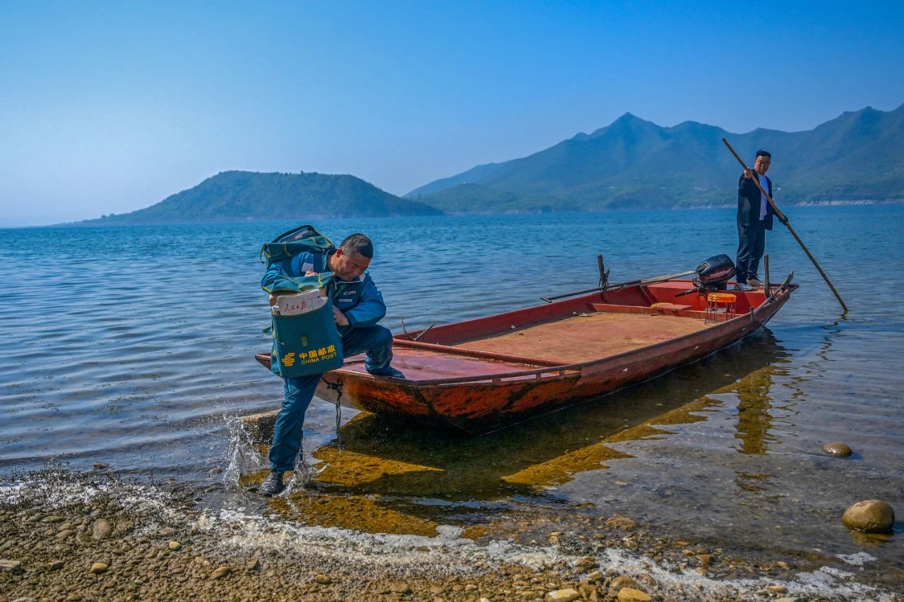 “小石来了!”船还没完全停稳,石新国就邮包上肩,一步跨到岸上,热络的招呼声很快在村里响成一片。“明天带啥菜?”乡亲们出行不便,每次石新国都会多问上一句,大伙儿平日缺啥少啥也都给他打电话。邮包越重,石新国的脚步越轻快——给乡亲们带的东西多了,意味着他和乡亲们走得更近了。
