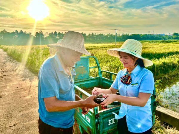 当前正值早稻的收割季节。烈日当空,炎热高温,老俵们热火朝天忙于田间地头。近日,泰和县分公司员工们自发深入田间地头,为抢收早稻的农民们送去“夏日清凉”。