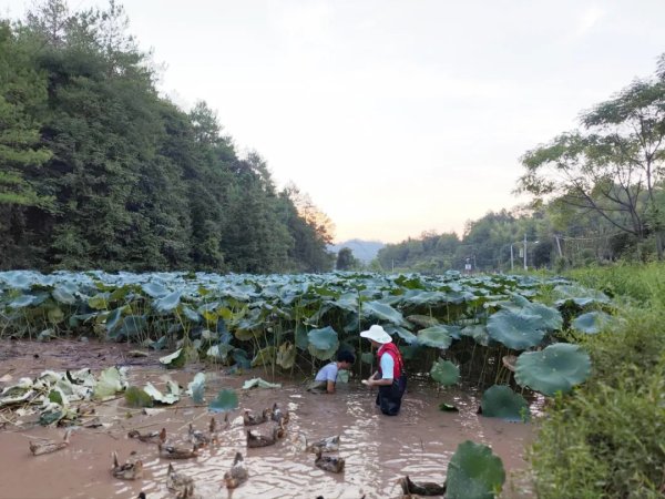 莲藕基地共60亩,志愿者们沉下心、俯下身,走进田里,大家分工明确、团结协作,有的摘莲蓬、有的运莲藕、有的洗莲藕,田地间一片忙碌的景象。经过一下午的努力,挖出莲藕100多斤。同时为解决“销售难”的问题,志愿者们通过微信宣传首批销售莲藕60斤,莲子20斤,藕粉50斤。“感谢邮政的同志们,帮我们采摘不算,还帮我们卖出去这么多。”种植户余伯仁说到。