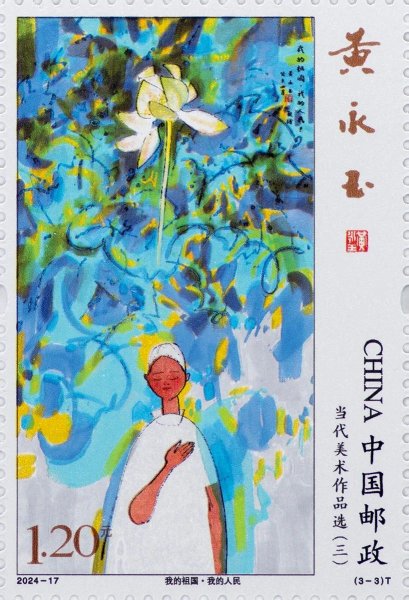 一图《老雪凝千古》原画作者为张仃,创作于1988年,为张仃先生焦墨山水代表作之一,现藏于中国美术馆。该枚邮票采用胶雕联合印刷工艺,画作以黑白色调为主,利用雕刻线条刻画这幅美术作品内容,能够最大程度还原原画的神韵。二图《白云黄鹤》由周令钊和陈若菊二人合作,为湖北武汉黄鹤楼一楼主壁画,原画藏于中国美术馆。该枚邮票采用胶印工艺,高精度胶印使得屋檐、窗户、人物表情等诸多图案细节展现得惟妙惟肖。三图《我的祖国·我的人民》原画作者黄永玉,创作于2003年,以抒情的彩墨语言塑造了一位白衣天使形象,现藏于中国美术馆。该枚邮票采用影写工艺,通过高饱和度和色彩鲜艳度来实现邮票的设计精髓。