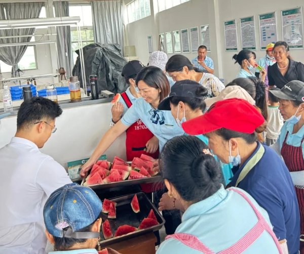 近日,安福县分公司工作人员分别来到严田、寮塘烤烟收购站,在热浪滚烫中为烟农们送去丝丝清凉。工作人员送上西瓜解暑止渴,并与烟农深入交谈,了解今年烟叶的种植及销售情况,并向大家宣传近期邮政助农贷款政策等,受到烟农们的欢迎。