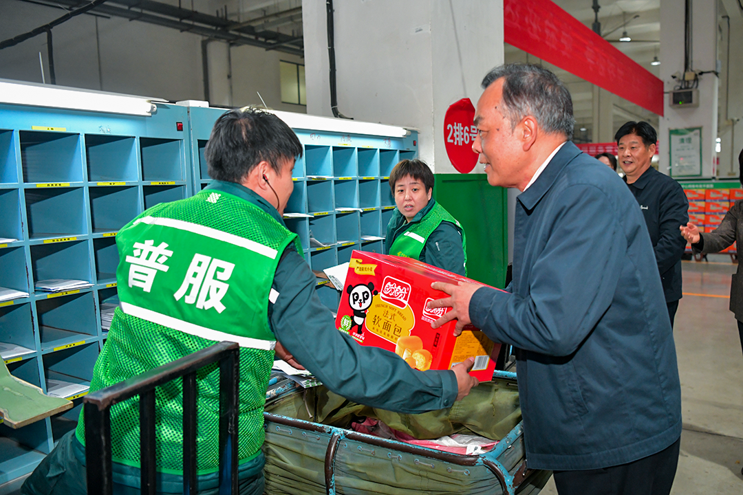 在郑州邮区中心生产车间,谭斌凡一行实地察看了旺季生产作业现场情况,详细了解近期邮件发运、接卸处理、设备效率效能以及作业人员等方面情况,对河南邮政寄递业务发展取得的成效给予了高度肯定。在信函作业区,谭斌凡与一线职工亲切交谈,仔细询问员工工资收入、社会保障等方面情况,并送上慰问品。他指出,今年旺季生产持续时间长、生产任务重,要加强后勤保障力度,确保干部员工始终保持良好的精神状态和身体状态。要持续加强工会自身建设,充分运用激励政策激发基层活力。要切实关心企业职工,了解职工所需所求所盼,做职工的“知心人”和“贴心人”。