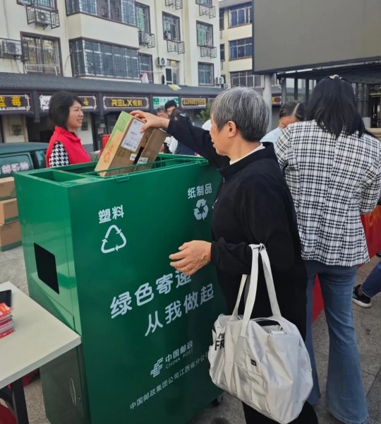11月9日起,靖安县分公司结合图书巡展活动,开展“绿色邮政 绿动未来”主题宣传活动。邮政工作人员在巡展现场设立绿色纸箱回收点,向前来参加巡展的市民宣传纸箱回收的重要意义。大家积极响应,纷纷将使用过的纸箱送至回收点,用实际行动支持环保。据统计,绿色纸箱回收点每日回收纸箱约20—30只,将全部投入营业窗口进行回收复用。