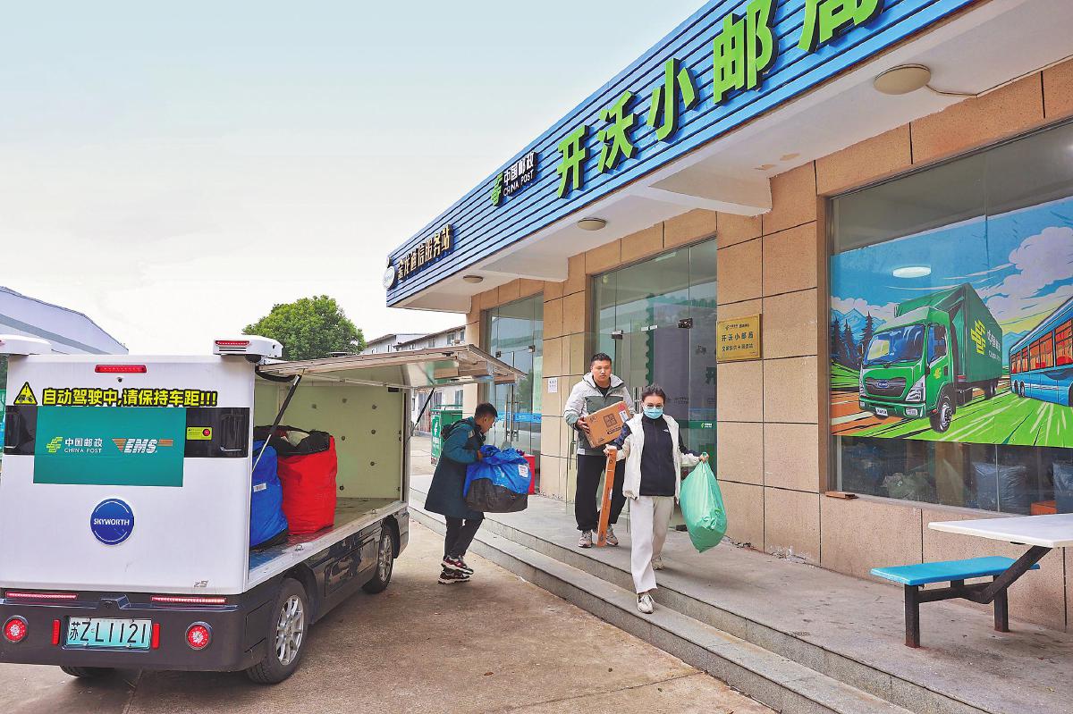 12月18日,江苏省南京市溧水区开沃园区门口,交接代投邮件的某快递公司快递员惊喜地发现,刚到园区,邮政无人车就已等在门口,扫码开门就装,关上门就送,非常方便。