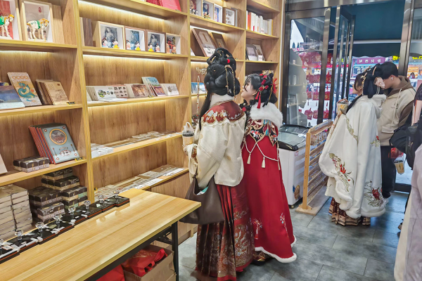 太昊陵祈福邮局对内外部装饰、布局进行全面升级。祈福主题的冰箱贴、明信片、手机贴、书签等文创产品备受游客喜爱,其中《百福图》集戳卷轴由102个形态各异、字体多变“福字”章戳组成,受到了游客追捧。