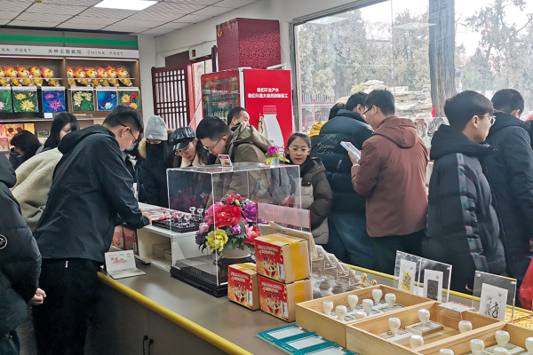 龙亭主题邮局化身热闹非凡的新春文化市集。在这里,开封市邮政分公司精心打造的惠民图书展、集邮文创产品展销、阅读分享会等活动轮番登场,为市民和游客献上了一份充满书香和“邮”味的新春贺礼。