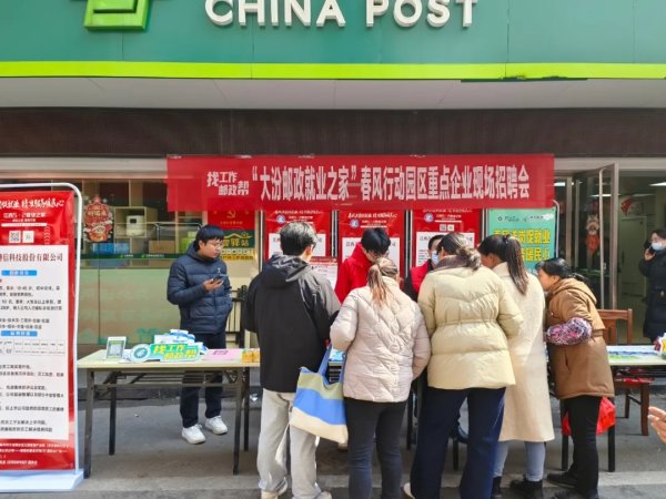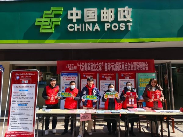 “找工作 邮政帮!”近日,遂川县分公司在大汾邮政所“5+2就业之家”示范点开展了一场春风行动园区重点企业现场招聘会,本次涉及招工企业有100多家,提供近万个岗位,现场咨询人员络绎不绝。其中有位家住湖南桂东清泉的龚先生赞扬道:“没想到来邮政存个钱,还能顺便把工作一起找了,邮政服务真是好!”