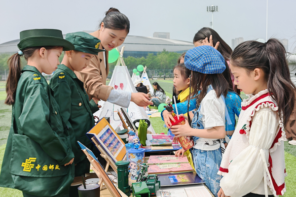 踏入活动现场,仿佛置身童话乐园,印有童趣图案的小帐篷错落有致。邮政工作人员化身“集邮导师”,手持精美邮册,深入浅出地讲解着邮票背后的故事,带领孩子们开启奇妙的邮票之旅。在孩子们好奇的目光中,一枚枚邮票就像承载着童话、历史、地理、艺术、体育等多元知识的 “微型百科全书”,让孩子们时而托腮沉思,时而踊跃提问,还不时响起阵阵惊叹声。