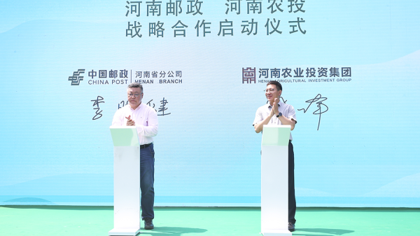 张峰副总经理表示,多年来,河南邮政根植中原沃土,在服务乡村振兴、畅通城乡循环、助力特色产业升级中发挥了“国家队”作用。河南农投与邮政正式携手,是国企服务大局的责任担当,也是农业现代化创新发展的生动实践。双方将聚焦品牌、渠道、金融三大方向深化合作,为“豫农优品”提供从仓储物流、电商销售到品牌宣传的全链路支持,让“藏在深山人未识”的河南优质特色农产品,通过邮政平台走向更广阔的市场。