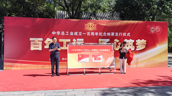 5月1日,中国邮政特别发行《中华全国总工会成立一百周年》纪念邮票一套两枚,全套邮票面值2.00元,图案名称为:亿万职工心向党、团结奋斗新征程。