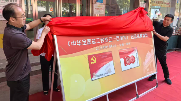为庆祝中华全国总工会成立一百周年,郑州市邮政分公司在全区开展了形式多样的邮票发行活动。