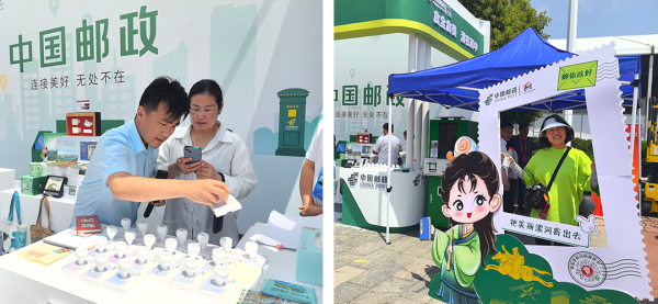 为满足参展客商和广大市民的用邮需求,漯河市邮政分公司在食博会现场和西城区分会场分别设立了邮政驿站,提供邮寄服务和邮政文创产品制作打卡。广大市民可现场体验“城市展览馆”“河上街”“贾湖遗址”“小商桥”“许慎文化园”“博物馆”等封片章戳及个性化冰箱贴制作,共享“食全食美漯在其中”的美好时光。该分公司还在邮票发行式会场外设置了邮票设计家签售处,吸引众多客商、集邮爱好者排起长队,争相购买食博会题材邮票。