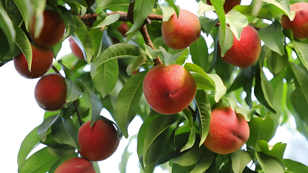 桐柏县四季分明、光照充沛、雨量丰沛,为朱砂红桃生长提供了天然沃土。朱砂红桃果肉紫红、皮薄核小,兼具脆甜与绵柔的独特口感。2013年,朱砂红桃获得了国家农产品地理标志认证,成为全国知名的“桃中珍品”。