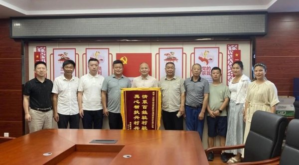 近期,益阳安化县梅城镇中田片村党总支书记郭喜才带领村委干部将印有“情系百姓驻村驻心 真心帮扶兴村兴民”的锦旗送到安化县邮政分公司,代表中田片村全体村民对安化县邮政分公司在巩固拓展脱贫攻坚成果同乡村振兴有效衔接的帮扶工作中给予的帮助,表示衷心感谢。