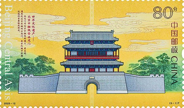 《世界文化遗产——北京中轴线》特种邮票第一枚“永定门”。
