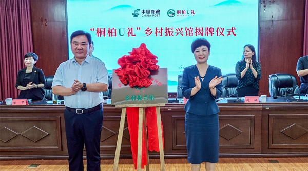 8月26日,“桐柏U礼”新品发布暨乡村振兴馆揭牌仪式在南阳市桐柏县举办。南阳市邮政分公司党委书记、总经理潘春雨,桐柏县委副书记、县长许晓燕共同为乡村振兴馆揭牌。