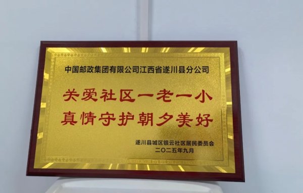 近日,遂川县银云社区居民委员会代表将一块写有“关爱社区一老一小 真情守护朝夕美好”的牌匾,送至遂川县分公司,以此表达对邮政公司长期以来积极参与社区共建、提供优质便民服务的衷心感谢。这块沉甸甸的牌匾,不仅是社区对邮政服务的肯定,更是遂川县分公司践行“人民邮政为人民”初心使命的生动见证。