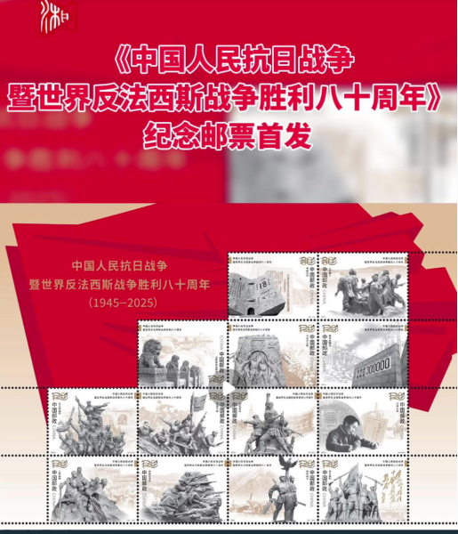 湖南日报9月3日讯(全媒体记者 刘乐)今天,《中国人民抗日战争暨世界反法西斯战争胜利八十周年》纪念邮票在湖南邮政各集邮网点正式发售。中南大学一附小麓枫少年邮局同步举办长沙首发仪式,并提供首发纪念戳加盖服务,吸引了不少集邮爱好者前来购买收藏,现场首日封全部售罄。