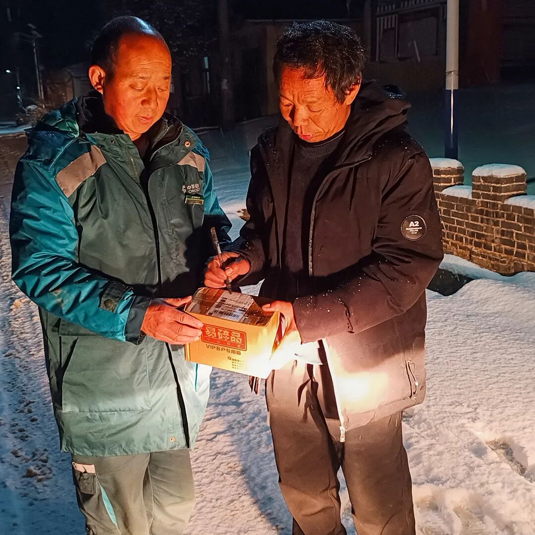 内黄县邮政分公司投递员踩冰踏雪坚持服务,把每一份包裹、每一封邮件都当作沉甸甸的责任。