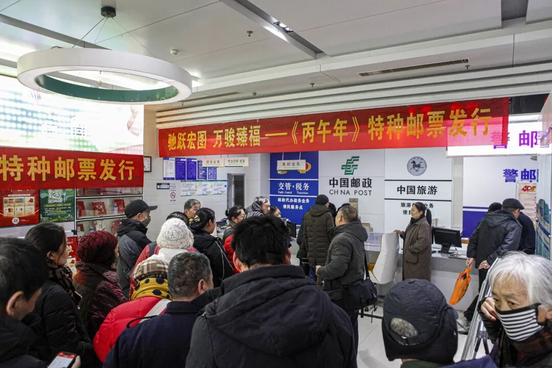 1月5日,中国邮政发行《丙午年》特种邮票一套2枚。当天,河南多地举办了形式多样的邮票发行活动。通过融合公益惠民、集邮品鉴、文化互动等场景,为广大市民与集邮爱好者搭建了近距离感受生肖邮票艺术魅力的平台,用邮政独有的传播方式,让生肖文化在中原大地上焕发新时代光彩。