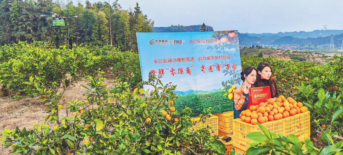 晨雾尚未散去,万亩冰糖橙基地已是一片橙红。果农将新摘的“国家地理标志产品”装入篮筐;15分钟后,无人机腾空而起,把一箱鲜橙直送邮件处理中心——从枝头到处理中心,全程不过30分钟。