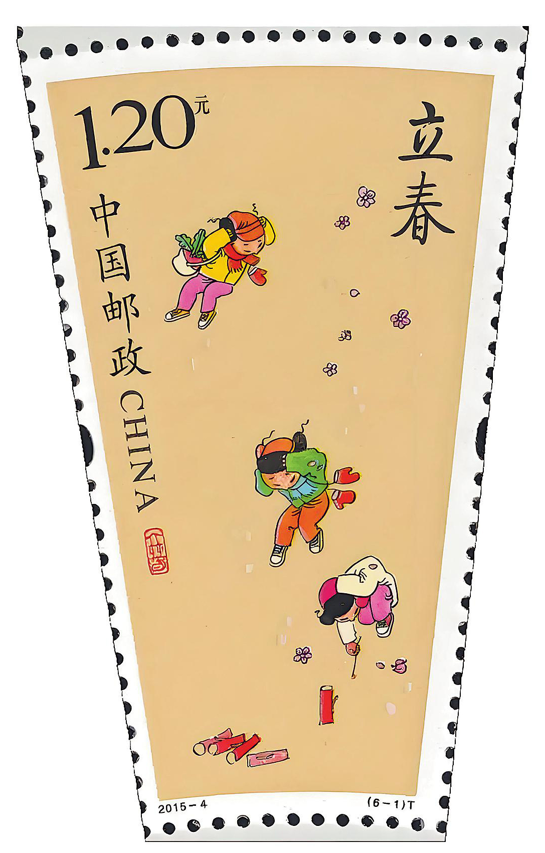 在传统观念中,立春有吉祥的含义。在古代,立春是重要的祭祀节日,也是劝农备耕的重要时节,后来逐渐演变为流传千年的各种民俗,包括演春、迎春、打春、咬春等。中国邮政发行的《二十四节气(一)》特种邮票中,第1枚便是“立春”。邮票画面为放鞭炮的欢乐小孩子点燃鞭炮,捂住耳朵,人物造型生动活泼,充满着喜庆气氛。
