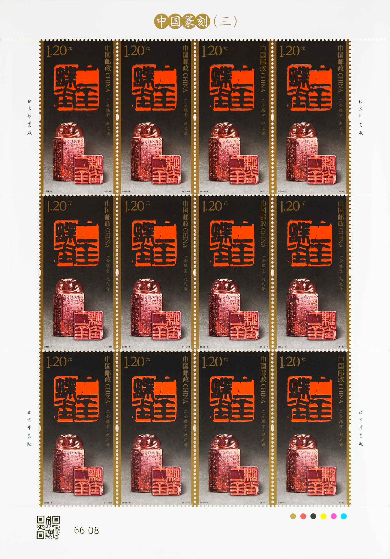 中国邮政定于2026年4月20日发行《中国篆刻(三)》特种邮票1套4枚。详情如下: