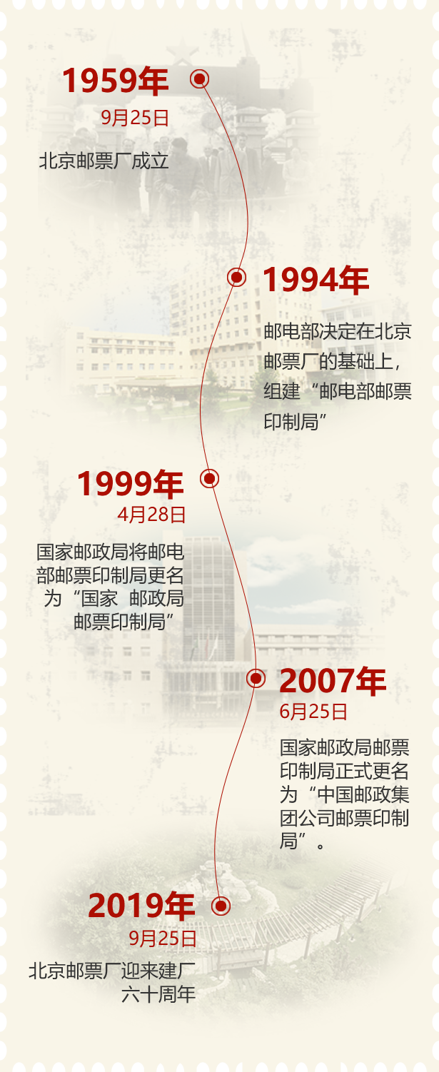 2019年,北京邮票厂迎来了建厂六十周年。回顾六十年的发展历程,一代代邮票人为共同绘就绚丽多彩的国家名片感到自豪;展望未来,我们将不忘初心、继续前行,为打造中国邮政优质品牌,为奉献给广大集邮爱好者更多更好的方寸精品而努力奋斗!