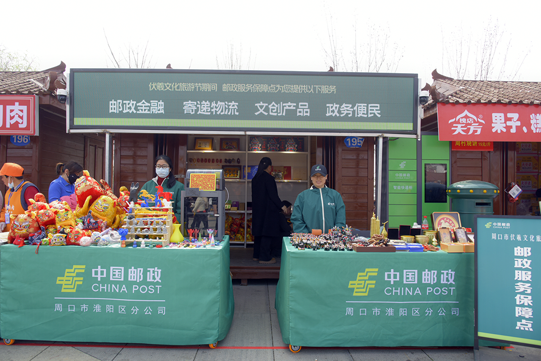 3月20日农历二月二,一年一度为期一个月的淮阳传统民俗活动——太昊陵庙会如期而至,人流如潮,布老虎、泥狗狗、压缩馍等民俗荟萃集中登场,活动现场,一抹抹邮政绿格外醒目。为了更好地服务市民游客,周口市淮阳区邮政分公司依托集邮文创、普惠金融、寄递物流等业务,深化板块协同,组织邮政员工“赶会”,为千年庙会活动服务护航。